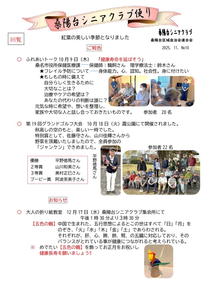 桑陽台シニアクラブは定期的に活動しています。 過去のクラブ便りを紹介します。