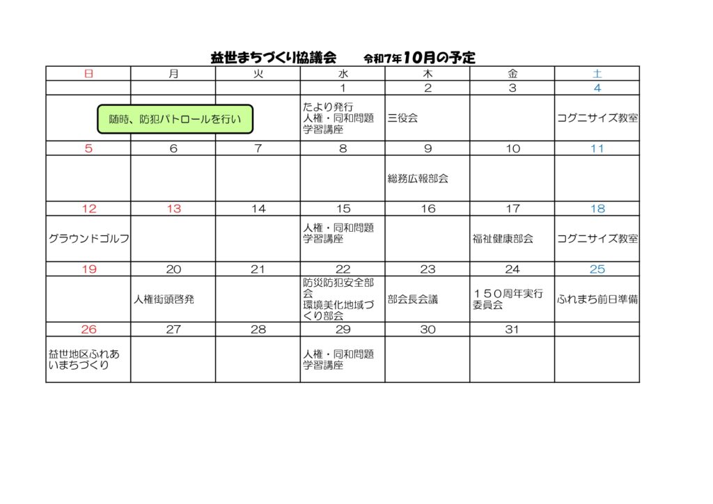 令和7年10月行事予定表